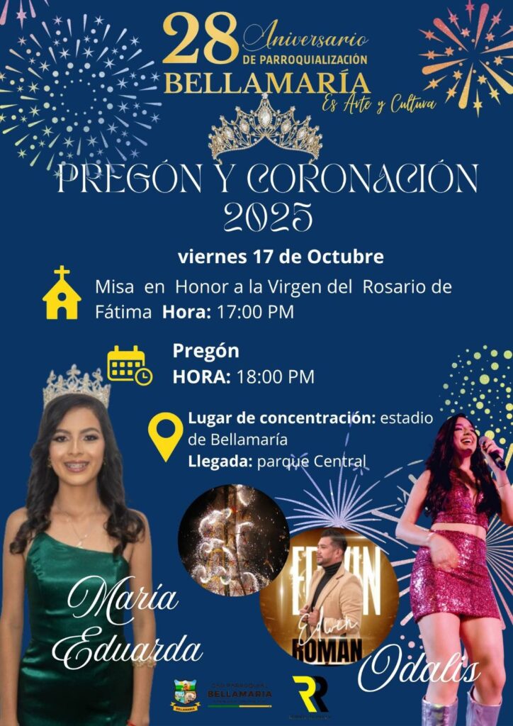 Del 17 al 25 de octubre, se desarrollarán diversas actividades culturales, sociales, deportivas y artísticas, pensadas para el disfrute de toda la comunidad. Estas jornadas buscan fortalecer la identidad, las tradiciones y el espíritu de unión que caracteriza a los habitantes de Bellamaría.